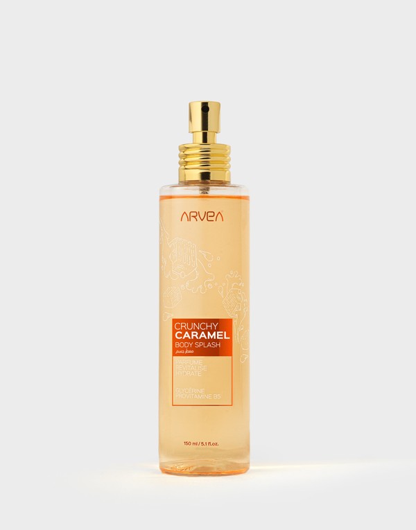 CRUNCHY CARAMEL Body Splash delicately coats the skin with a trail of sweet, delicious caramel scent while providing moisturizing benefits thanks to its formula enriched with glycerin and provitamin B5.